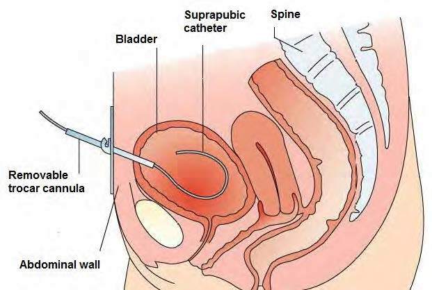 A catheter is a thin hollow tube that can be inserted in the bladder either through the urethra or suprapubically.
