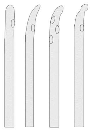 Fig. 7 From left to right: Straight catheter with rounded tip with one eye, rounded tip with two eyes, open end tip
