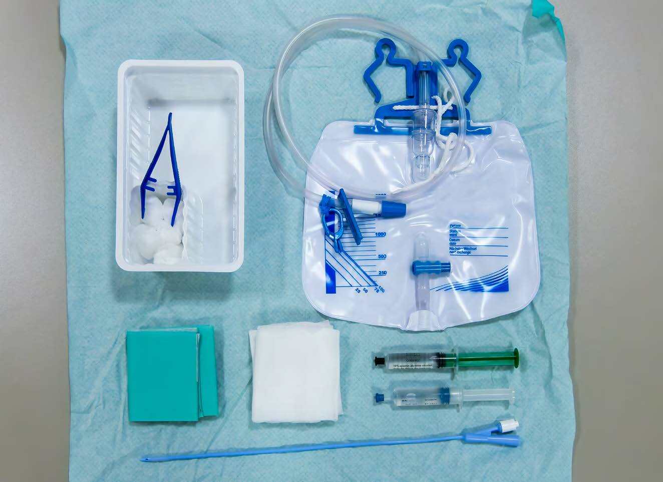 Different types of catheter sets are available for indwelling and suprapubic catheterisation (refer to local policy). There is no standard list of materials for a catheterisation set/pack. A catheter set could contain gloves, underlay, cotton balls and gauzes, forceps, and aperture drape for the preparatory stage of catheterisation. It also provides the lubricating gel for the introduction of the urinary catheter and sterile water for inflating the balloon of a self-retaining Foley catheter. One should check individual packs for required contents; the catheter and drainage bag are usually separate from the catheterisation packs.