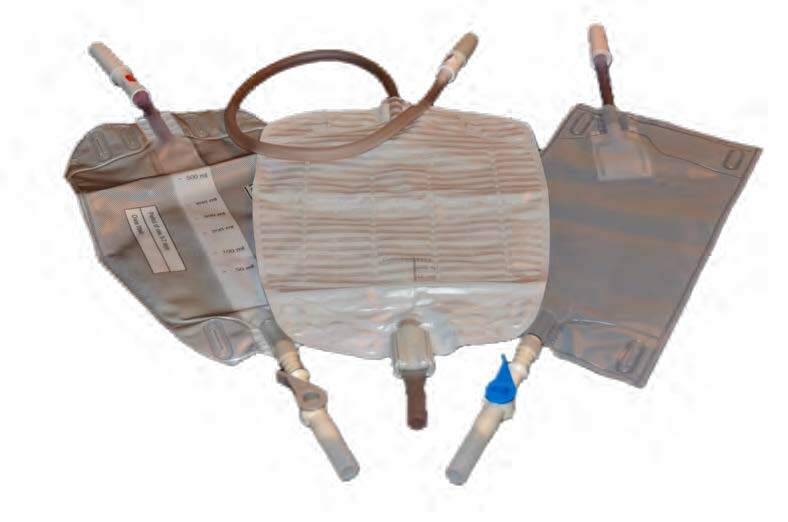 There are several different bags available; selection of the bag depends on whether it is for short-term drainage at the hospital or for long-term use, the patient’s mobility, cognitive function, daily life etc. The bags can have a variety of special features.