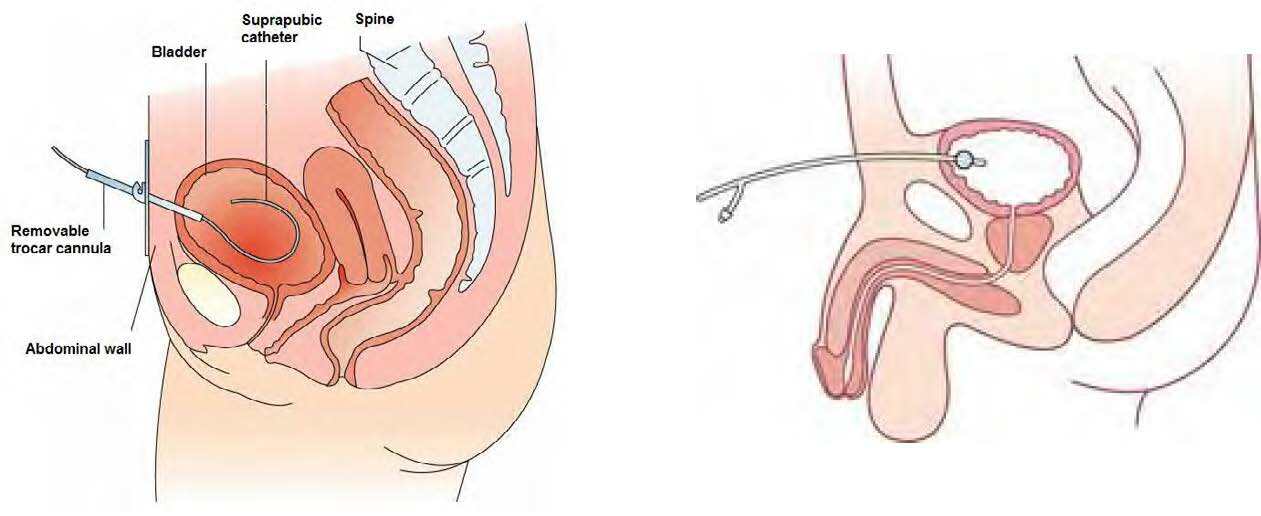 Suprapubic catheterisation is the insertion of a catheter into the bladder via the anterior abdominal wall (Figs. 3 and 4).