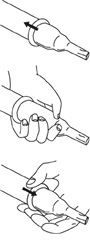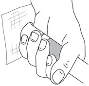 Stretch the penis gently as you roll on the MEC. When the MEC is unrolled, press it against the penis so that it adheres. No other glue or adhesive strip is needed. | ![]() Fig. 47.a, b, c. Press the MEC against the penis |