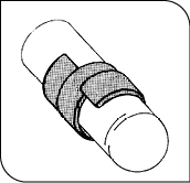 | Apply the adhesive double-sided tape in a spiral overlapping fashion around the base of the penis. | ![]() Fig. 49. Spiral overlapping of the tape stripe (Source: Manfred Sauer GmbH) |