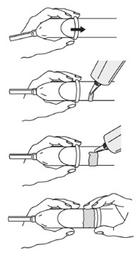 | Apply the adhesive, in small quantities, in a ring on the middle of the penis shaft. Do not put adhesive on any skin defects. | To ensure the adhesion process is successful. |