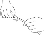 | If the patient is not circumcised, hold on to the foreskin when you put on the MEC. | Pulls forward the retracted penis and makes it easier to apply the MEC Keeps the foreskin in the right place. |
