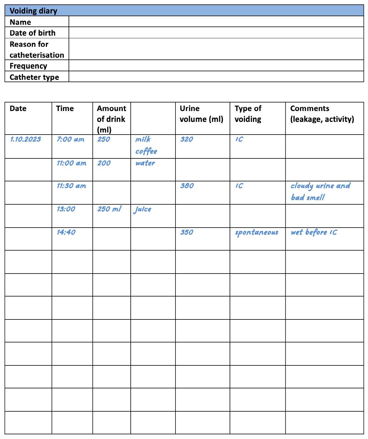 • Contact information for a healthcare professional in case of problems with bladder management and IC