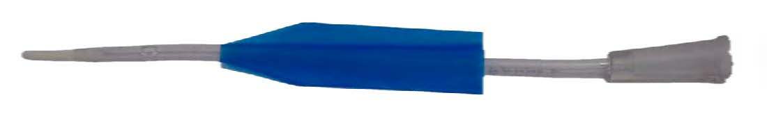 The pointed tip is squeezable and has a bendy end. This tip can be useful in case of obstruction and dilatation because the Charrière increases in size along the first centimeter of the catheter. The tip ends in a ball to prevent the catheter becoming trapped in the urethra.